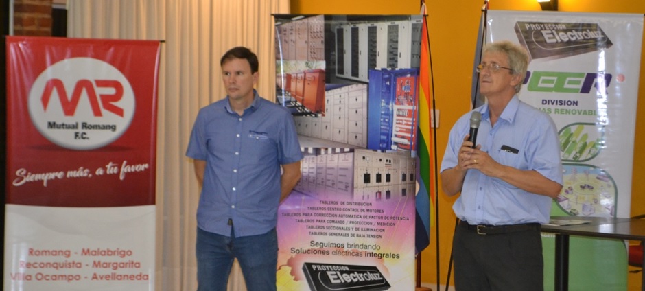 El miércoles 4 de abril Miguel Zanel y el técnico Walter Luna, gerente de venta comercial y del departamento de energías renovables respectivamente, de la firma Proyección Electroluz S.R.L. de Reconquista, disertaron en la Mutual de Romang Fútbol Club acerca de la generación de energías renovables, básicamente la energía solar fotovoltaica.