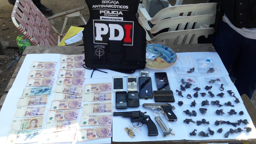 Mientras, en la ciudad de Santa Fe, simultáneamente las tropas policiales ingresaban en una morada de Pje. Cullen y Estrada donde detuvieron a una pareja y continuaban con el secuestro de estupefaciente y celulares.