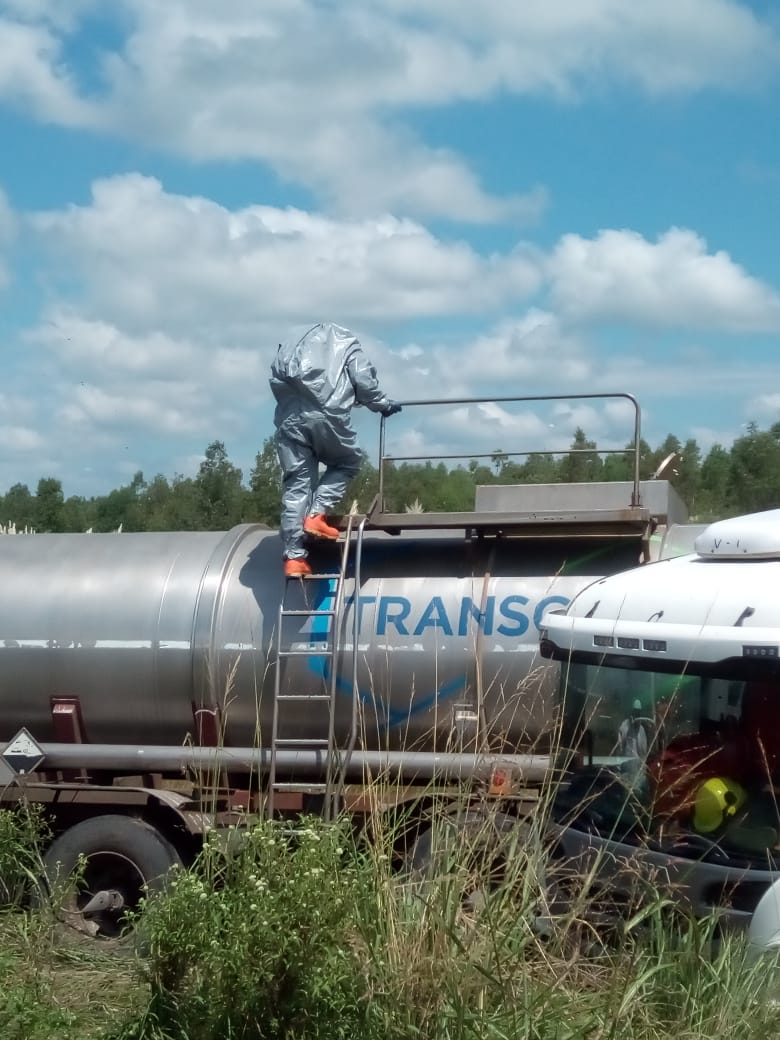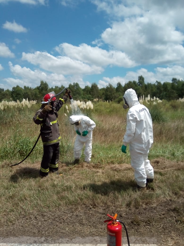 Desde Protección Civil se convoca a la Brigada de Materiales Peligrosos. Participaron brigadistas de Calchaqui y San justo solamente.