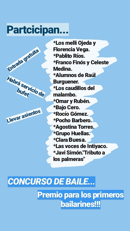 Conjuntos musicales. Baile popular. Servicio de comidas. Bono contribución.