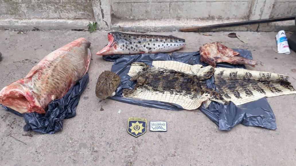 Además los efectivos policiales, lograron secuestrar piezas de patí, surubí, yacaré, carpincho y sábalo.