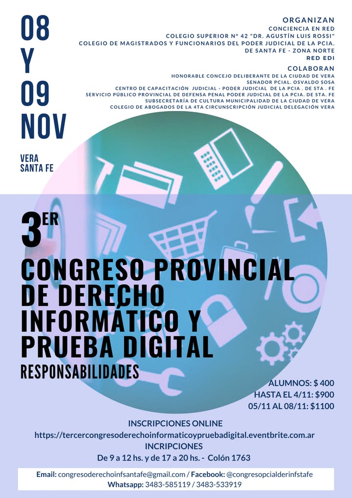 Se desarrollará este 8 y 9 de noviembre en la ciudad de Vera. El tema central en esta oportunidad será “Responsabilidades”, abordando des las diferentes ópticas las responsabilidades que conlleva como profesionales informáticos, judiciales, policiales, docentes; y cómo debemos abordar cada situación para mejorar las prácticas.