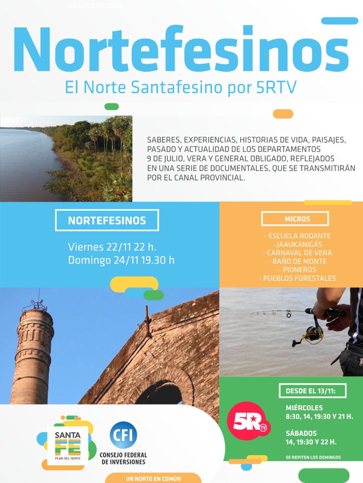 ? Se reproducirán además seis microdocumentales con historias nobles, paisajes emblemáticos, actividades y expresiones culturales que ofrece y distinguen al norte santafesinos: