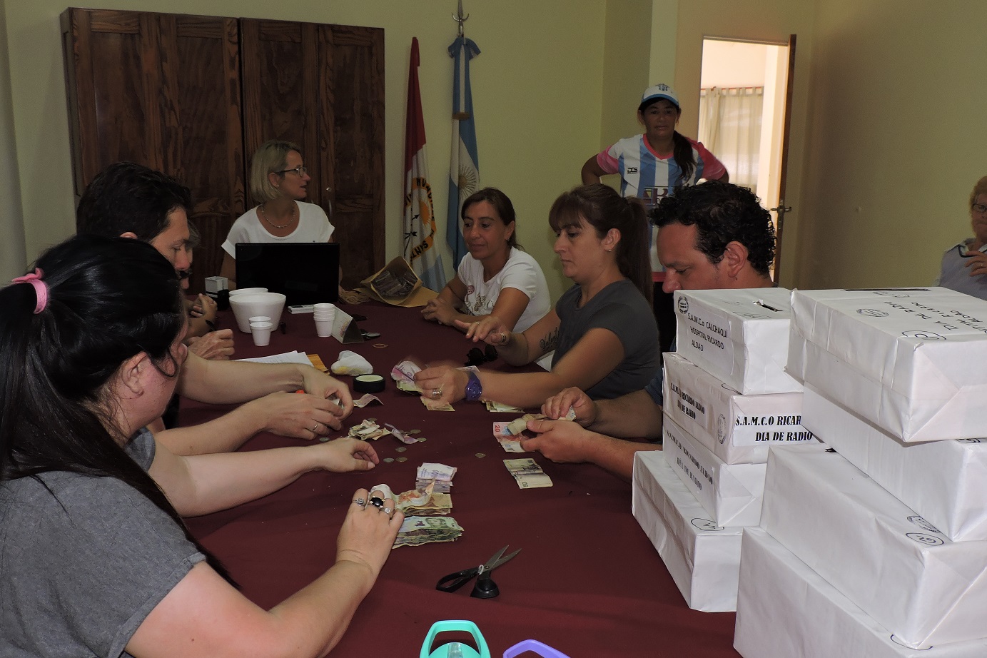 En el cuartel de Bomberos Voluntarios, se realizó el recuento de cada urna. El recuento estuvo a cargo de la tesorera del Samco Eva Capello, el secretario Leandro Bertolini, la directora del hospital Dra. Valeria Peralta y la CPN Gabriela Humoller, gerente de Mutual Calchaquí.