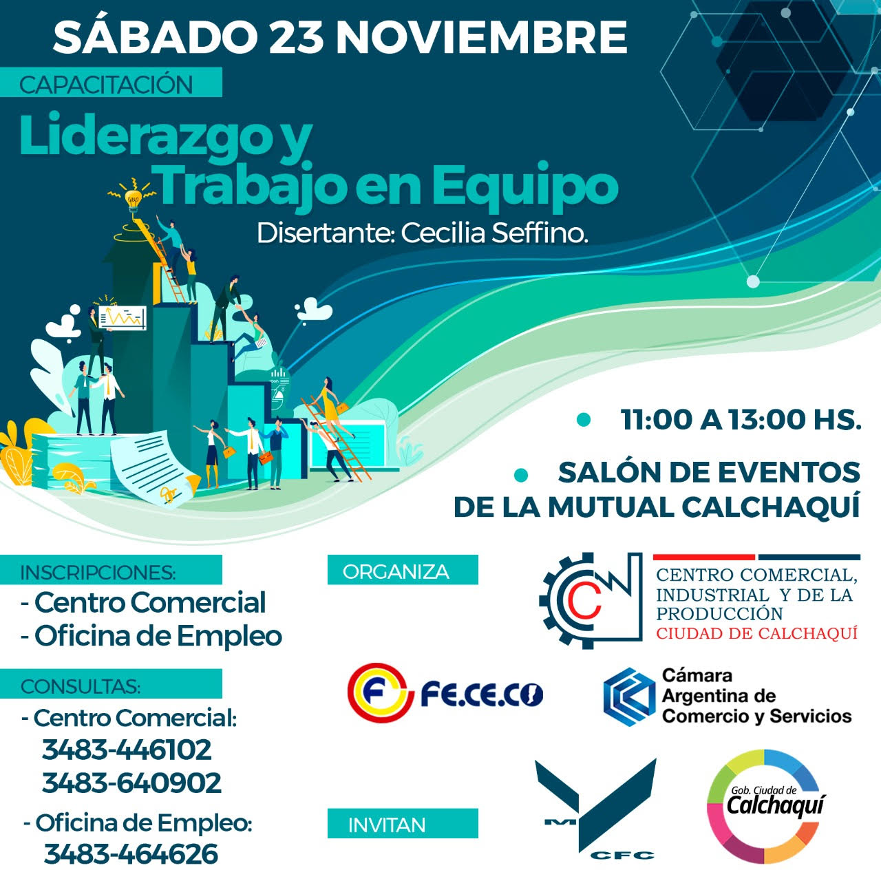 El Centro Comercial, Industrial y de la Producción de Calchaquí, invita a todos los interesados a la capacitación que se llevará a cabo este sábado 23 de Noviembre en la salón de eventos de la Mutual de Calchaquí Football Club a las 11hs y con una duración aproximada de una hora y media.