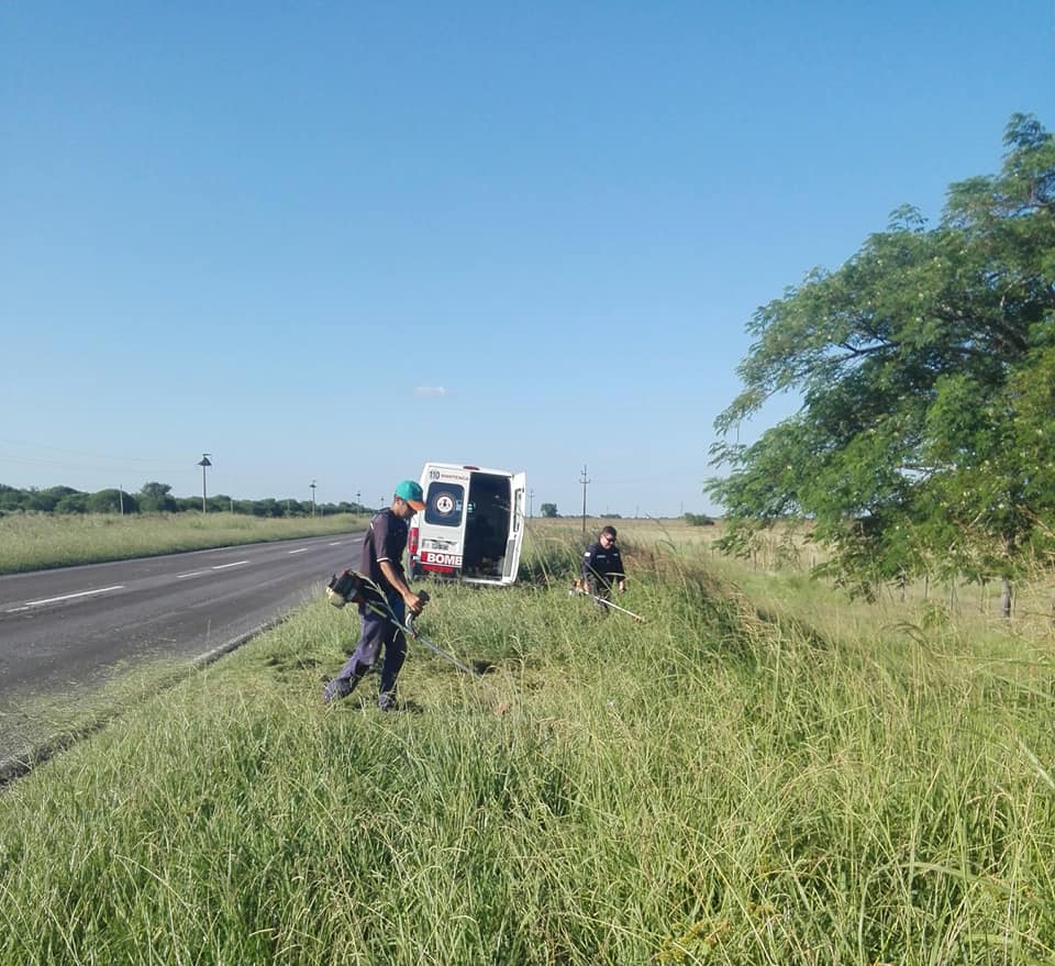 Este jueves 23 de enero, tres bomberos voluntarios del Cuartel Nº 101 con sede en Calchaquí, tomaron sus motoguadañas y en un móvil se trasladaron hasta el monolito que recuerda la Tragedia de Ecos.