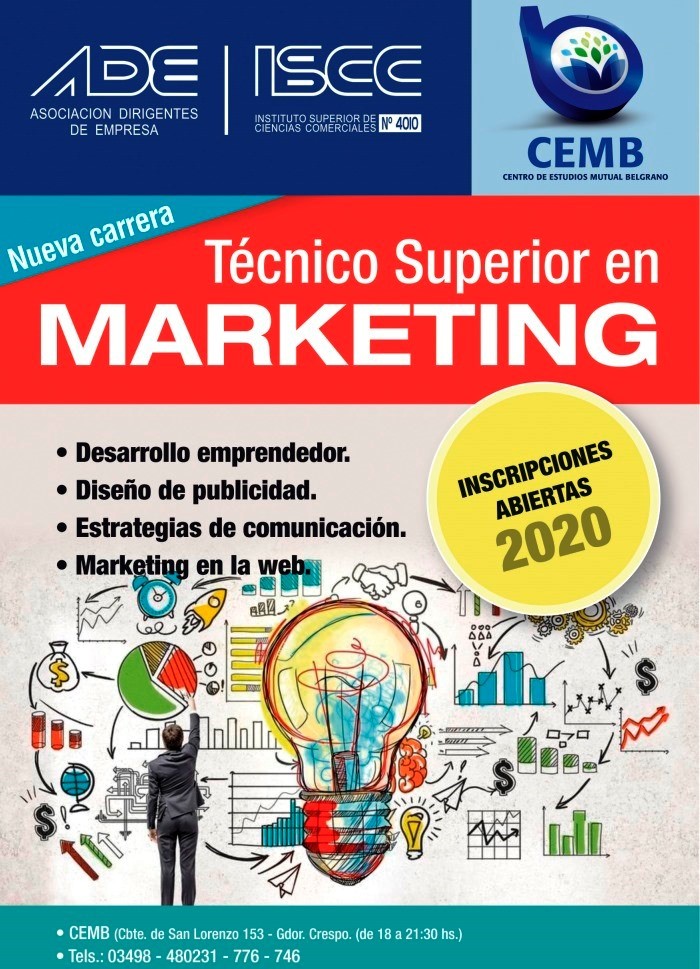 Desde el Centro de Estudios Mutual Belgrano se informa que por primera vez en nuestra región se pondrá a consideración la Carrera en Tecnicatura Superior en Marketing, con habilitación provincial y nacional.