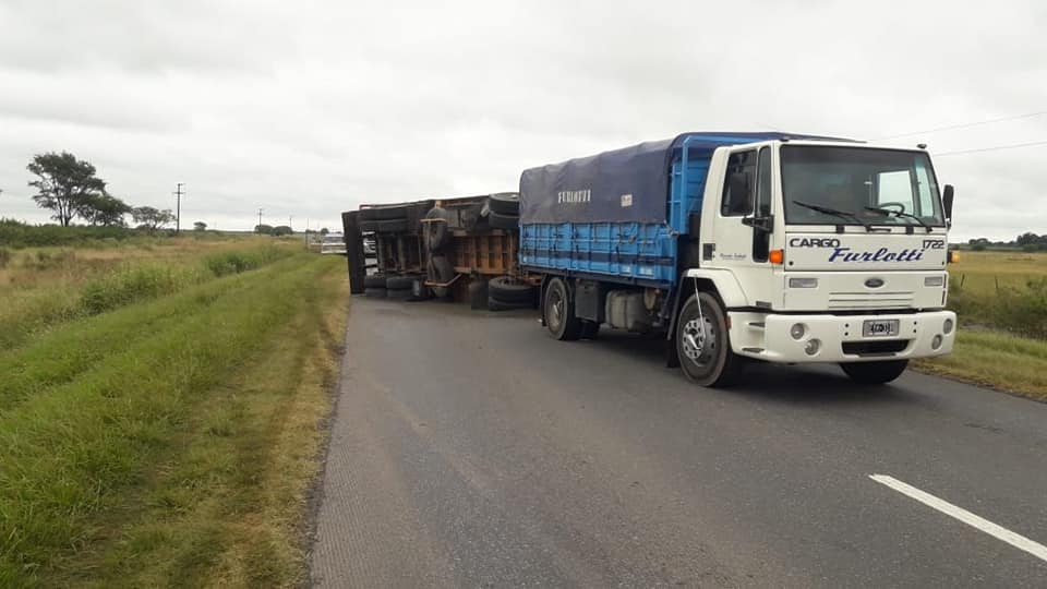 El vehículo interviniente fue un Chasis c/ Cabina, marca Scania, dominio EYH318 y acoplado dominio LAA064 que transportaba semillas de girasol.