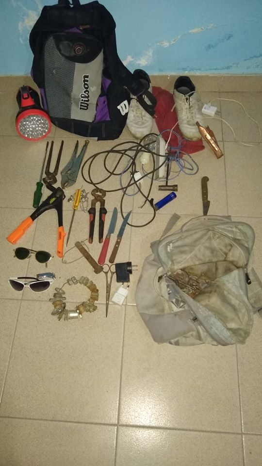Fue perseguido por el personal. Arrojó en su huida las mochilas con herramientas y se internó en zona de monte dándose a la fuga. Se procedió al secuestro de los elementos arrojados los cuales serían propiedad del denunciante.