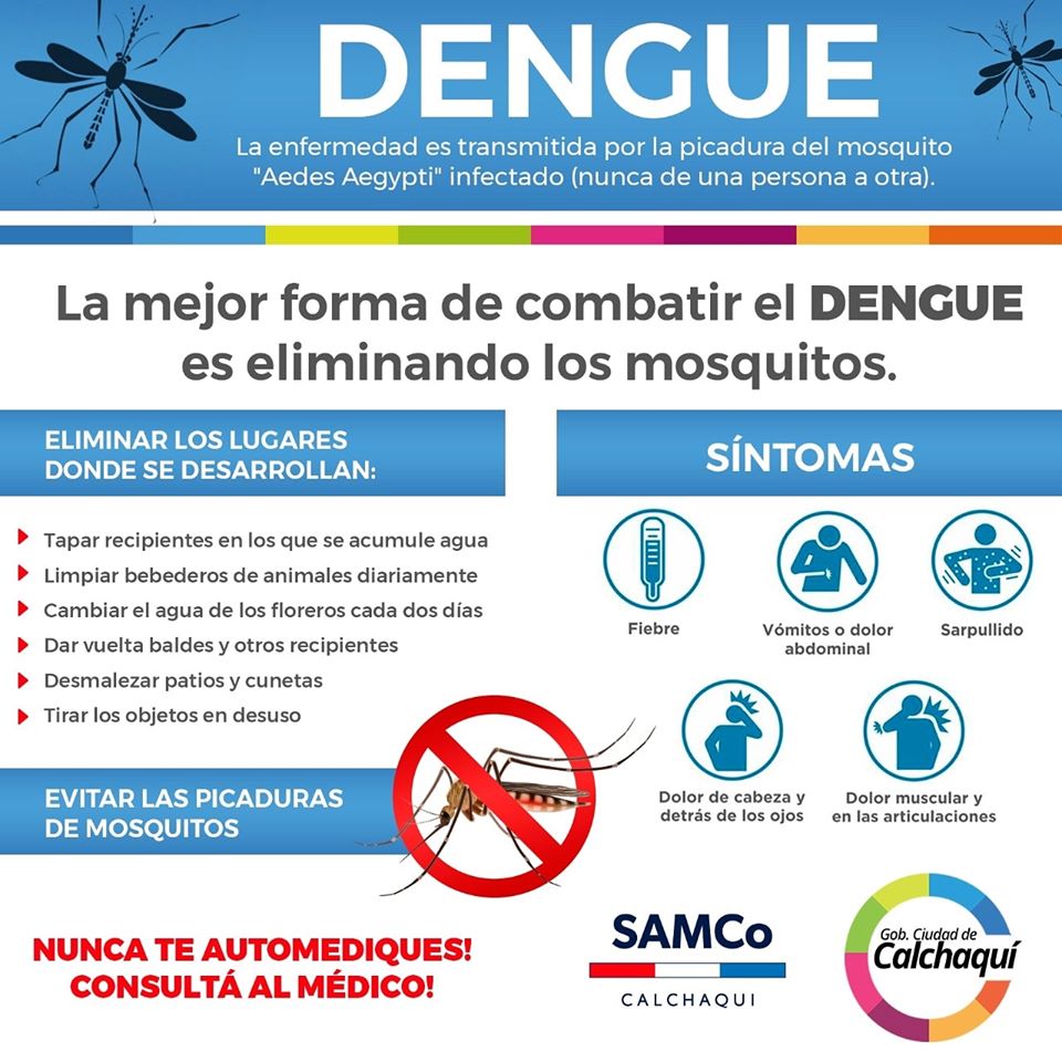 Es la recomendación brindada por el municipio junto al Samco local. La enfermedad es transmitida por la picadura del mosquito “Aedes Aegypti” infectado y nunca de una persona a otra.