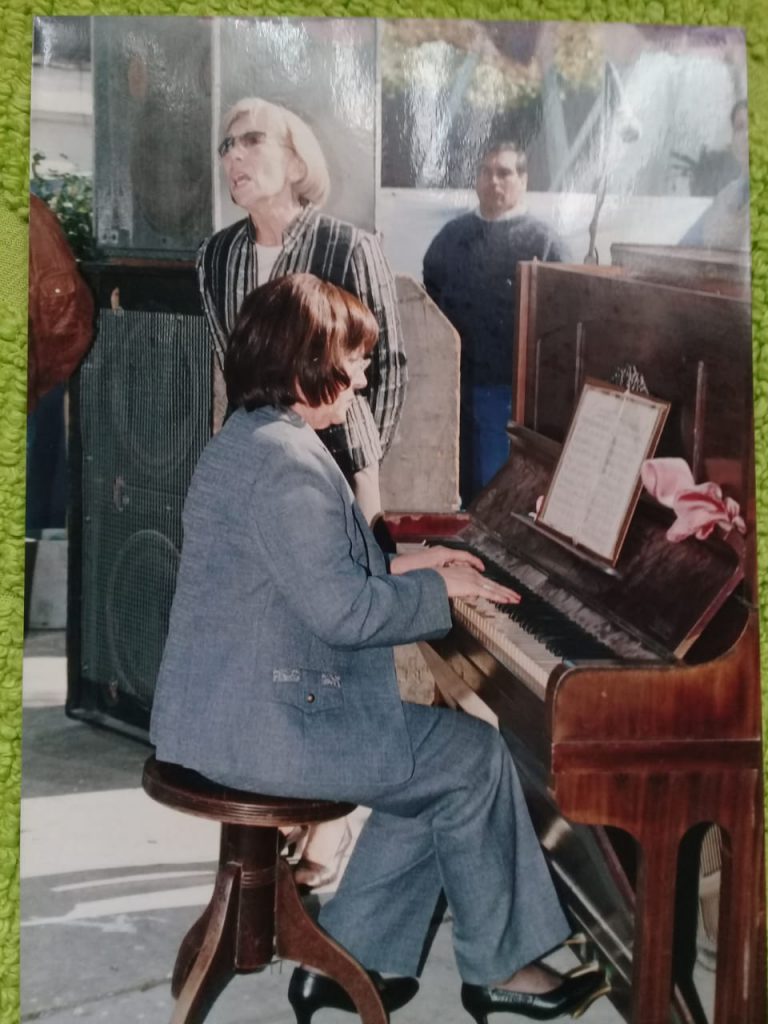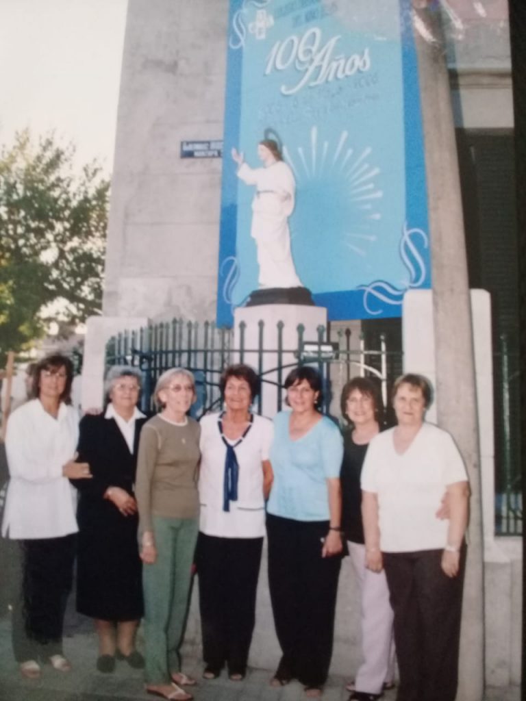 En la otra imagen, frente al Niño Jesús,las dos creadoras del himno junto a directivos y docentes de aquella época.