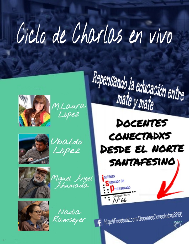 El primero de los 4 encuentros, inició este viernes, a cargo de la Prof. Nadia Ramseyer. Se exponen sobre diversos temas que hacen al ser docente mediante Facebook live. También participarán los docentes María Laura López, Miguel Ahumada y Ubaldo López.