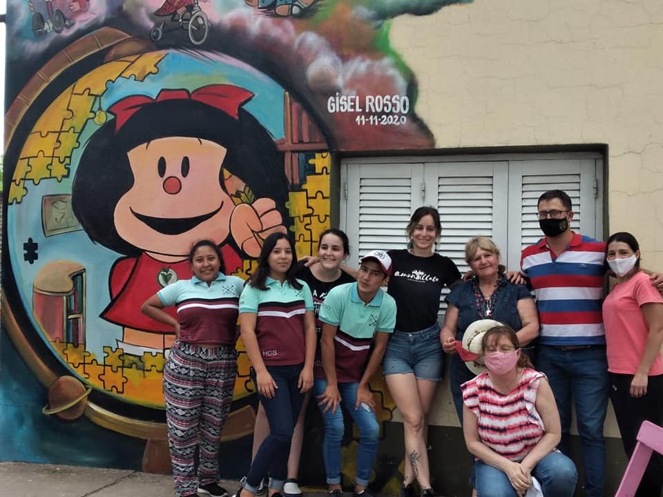 En el marco de los 131 años del pueblo, la Biblioteca Popular “Laura Roldán” celebró su  vigésimo aniversario con la pintada de un mural a cargo de la artista plástica y muralista internacional Gisel Rosso.