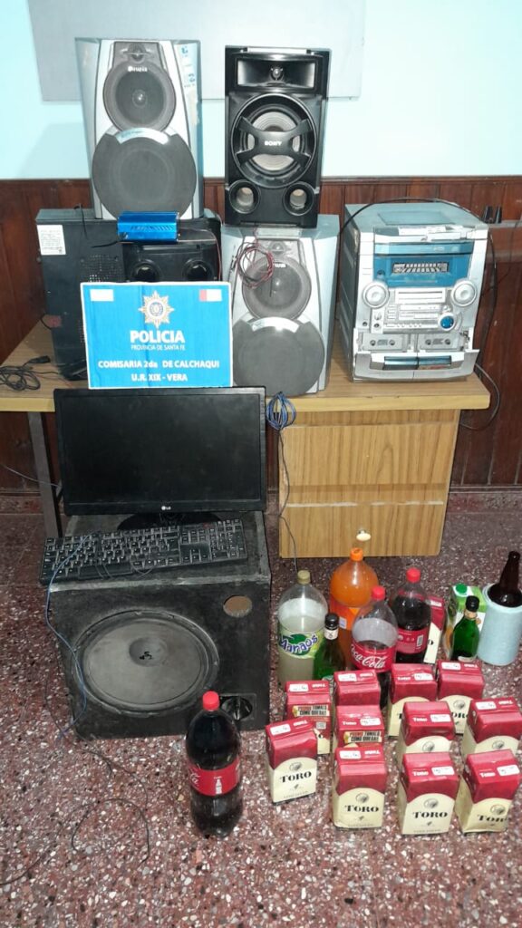 Además se procedió al secuestro preventivo de una CPU, (MONITOR, TECLADO, MOUSE), un BAFLE DE COLOR DE GRAN TAMAÑO, LÁSER MARCA SCWEY, EQUIPO DE MUSICA CON PARLANTES; BEBIDAS VARIAS=(CAJAS DE VINO, PORRON, GASEOSAS, FERNET, ETC DE DIFERENTES MARCAS). Interviene UNIDAD FISCAL NRO 4 VERA.-