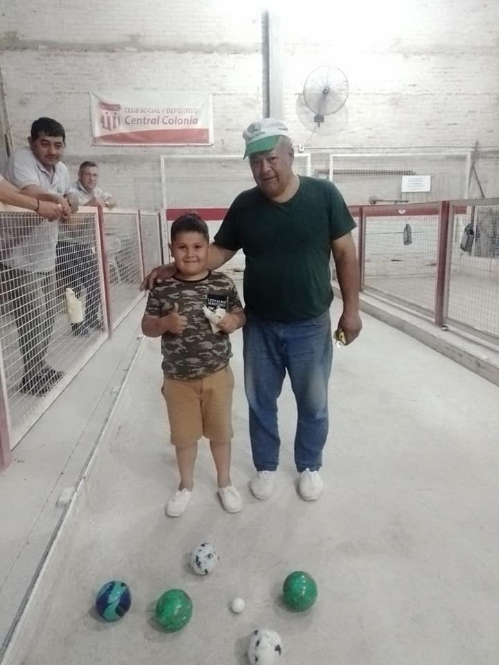 El pequeño Santino Giménez de tan solo 6 años participó ayer de un torneo de dúos organizado en el Club Social y Deportivo Central Colonia. Formó pareja con su tío Raúl Giménez logrando obtener el primer premio del certamen.