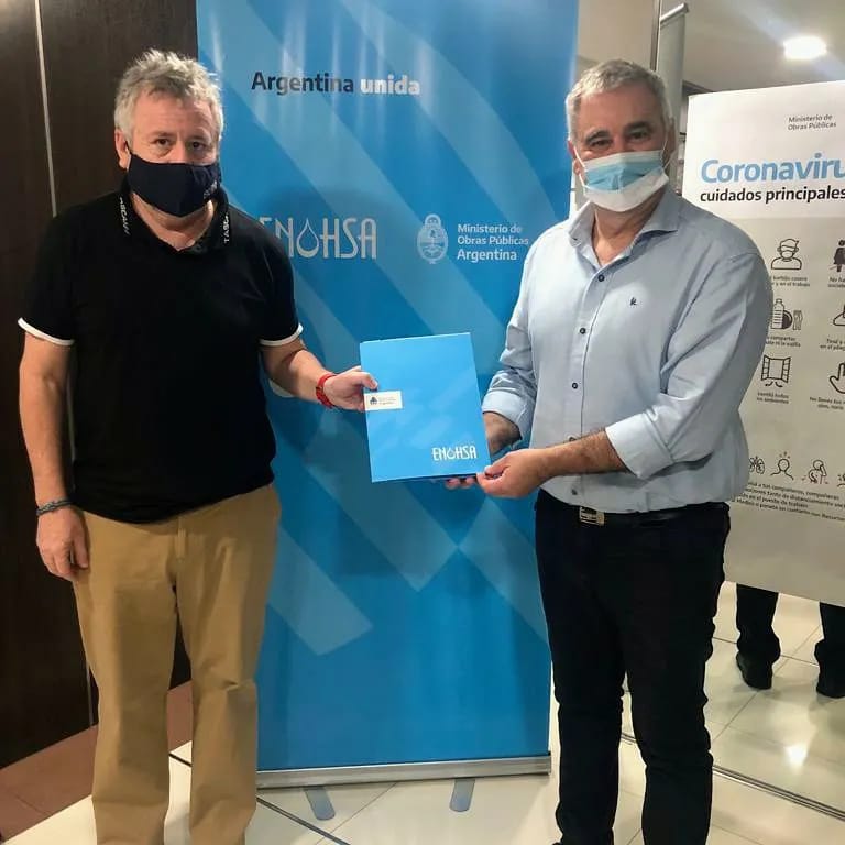 En las oficinas de ENOHSa,  el intendente Rubén Cuello firmó el convenio para la realización de la obra que completará la red cloacal en los barrios Malvinas, San Cayetano, Belgrano Sur, San José Obrero y Carlos Gardel.