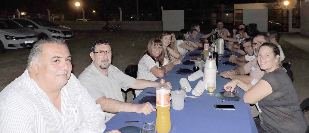 Al finalizar, los asistentes compartieron una cena de camaradería en el patio de ingreso a la sede gremial.