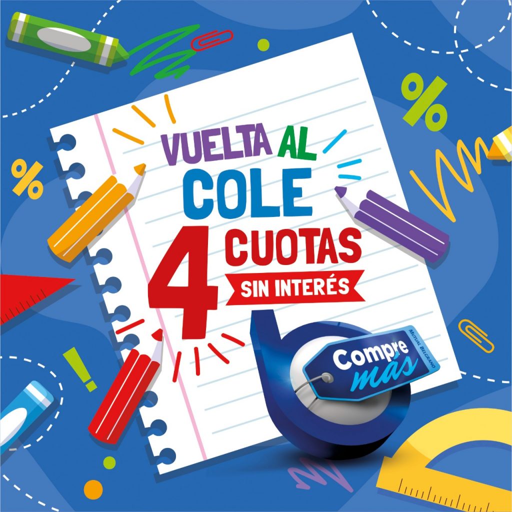 Desde este lunes 14 de febrero y hasta el día 11 de marzo, tendrá vigencia la Promoción “Vuelta al Cole” de Mutual Belgrano, con 4 cuotas sin interés a través del Sistema Compre Más de la Institución.