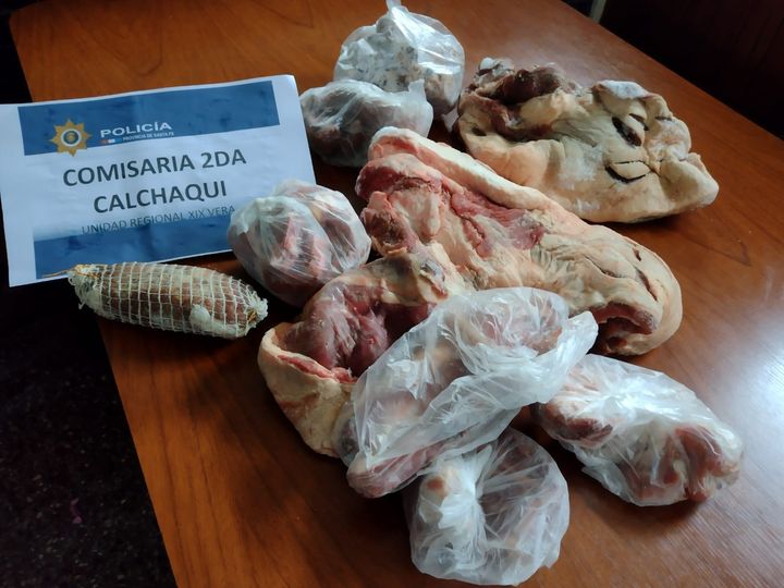 Previa requisa domiciliaria se procedió al secuestro preventivo de distintos cortes cárnicos de vacuno y cerdo, como también chacinados. Asimismo se detuvo al autor del robo.