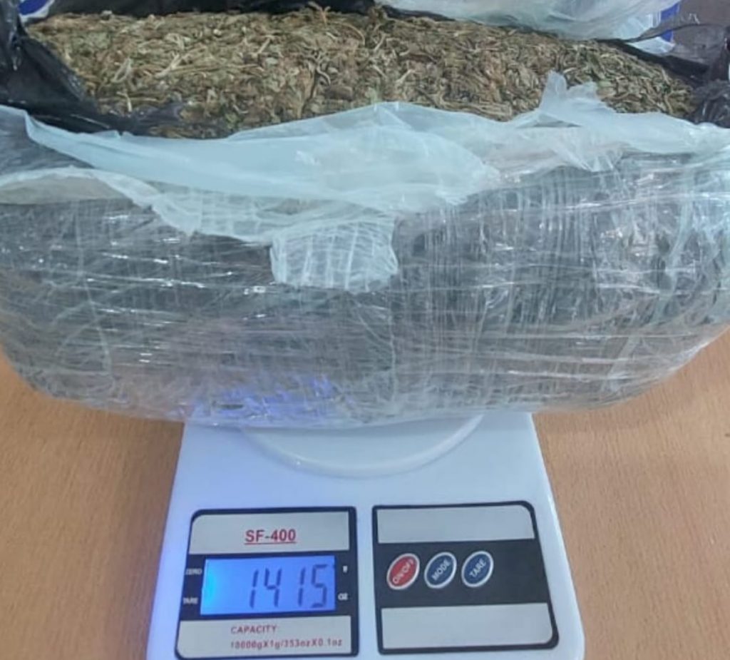 Se advirtió cannabis sativa, se procedió a la pericia y pesaje, arrojando como resultado el secuestro de 1415 gramos de marihuana.