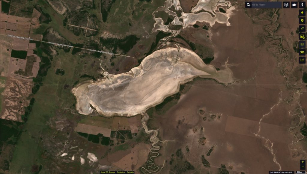 Que tristeza. Me dice el amigo @marcosmian1 que la laguna El Cristal, uno de los lugares más lindos de Santa Fe, finalmente se secó. Acá abajo voy a poner un par de imágenes satelitales que reflejan la sequía que vive el norte santafesino ? pic.twitter.com/fPt2E2ZlDF
