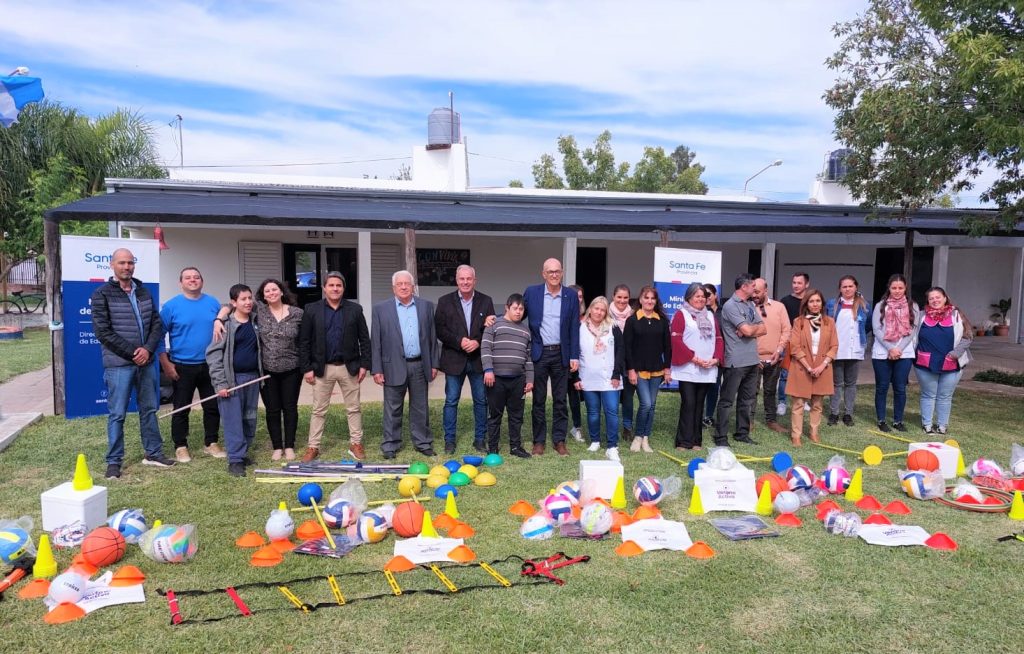 El ministro de Educación Victor Debloc, acompañado por el director provincial de Educación Física, Alfredo Giansily, la supervisora Silvia Ramis, el senador Osvaldo Sosa y el referente territorial de los programas campamentiles y Verano Activo, Darío Nievas, participaron de un acto en la Escuela Especial de Formación Laboral Nº 2120, donde fueron recibidos por la directora Marisa Tedini.