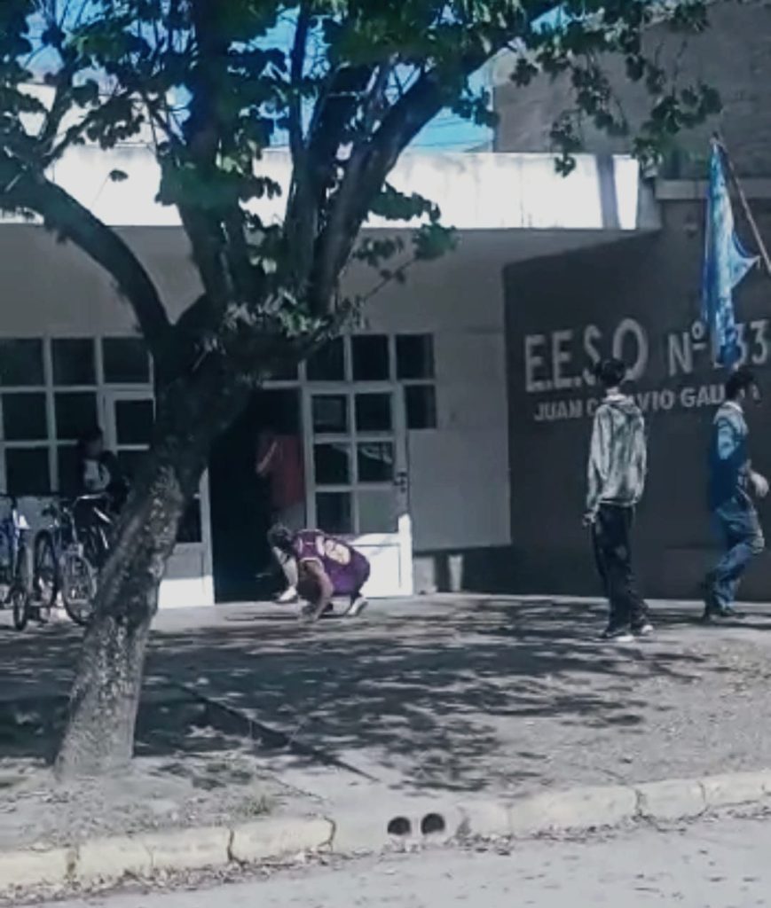 Lamentablemente, este miércoles 10 de mayo, se viralizó en las redes sociales la pelea de jóvenes frente a la Escuela de Enseñanza Secundaria Orientada Nº 233 “Prof. Juan Octavio Gauna”. Sin detallarse los motivos, un joven mayor de 18 años cruza la calle 25 de mayo para enfrentar al adolescente de 15 años que lo espera en la vereda, mientras se escuchan las arengas de otros compañeros y la voz de una jovencita gritándole “Basta, basta”.