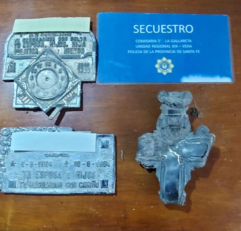 Personal de la Comuna local realizó la denuncia ante la Comisaria 5ta de La Gallareta, dando cuenta que autor/es ignorados sustrajeron desde el cementerio comunal , en diferentes panteones placas de bronce, alpaca, etc.