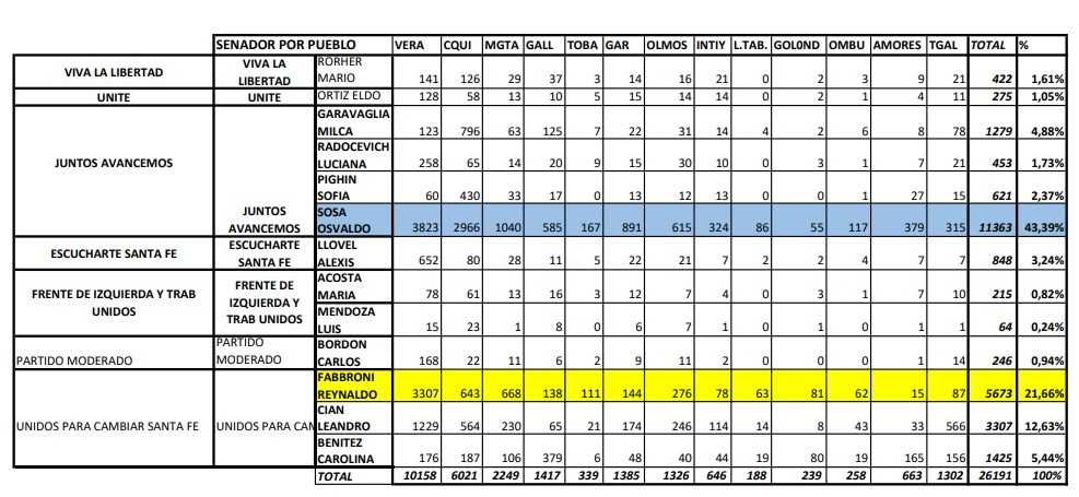 En relación a la diferencia de votos entre Juntos Avancemos (13.716 votos) y el frente Unidos para cambiar Santa Fe (10.405 sufragios), la ventaja es de 3311 votos.