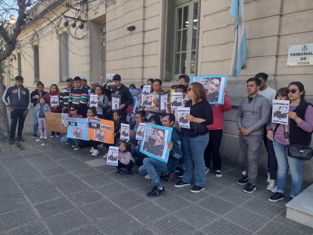 Este jueves 05 de octubre de 2023, a las 11 horas se llevó la primera audiencia imputativa en los tribunales de la ciudad de Vera. Afuera se congregaron familiares y amigos de la víctima para reclamar “justicia”.