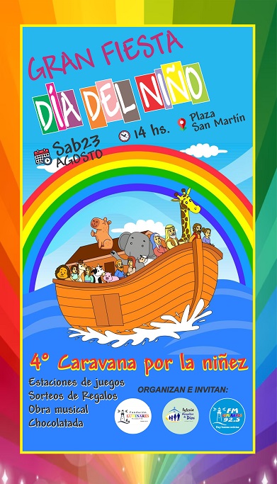 En la plaza, habrá estaciones de juegos, sorteos de regalos, la obra musical “Todos al Arca” y culminará con chocolatada para todos los pequeños. Sin dudas, una tarde para compartir en familia.
