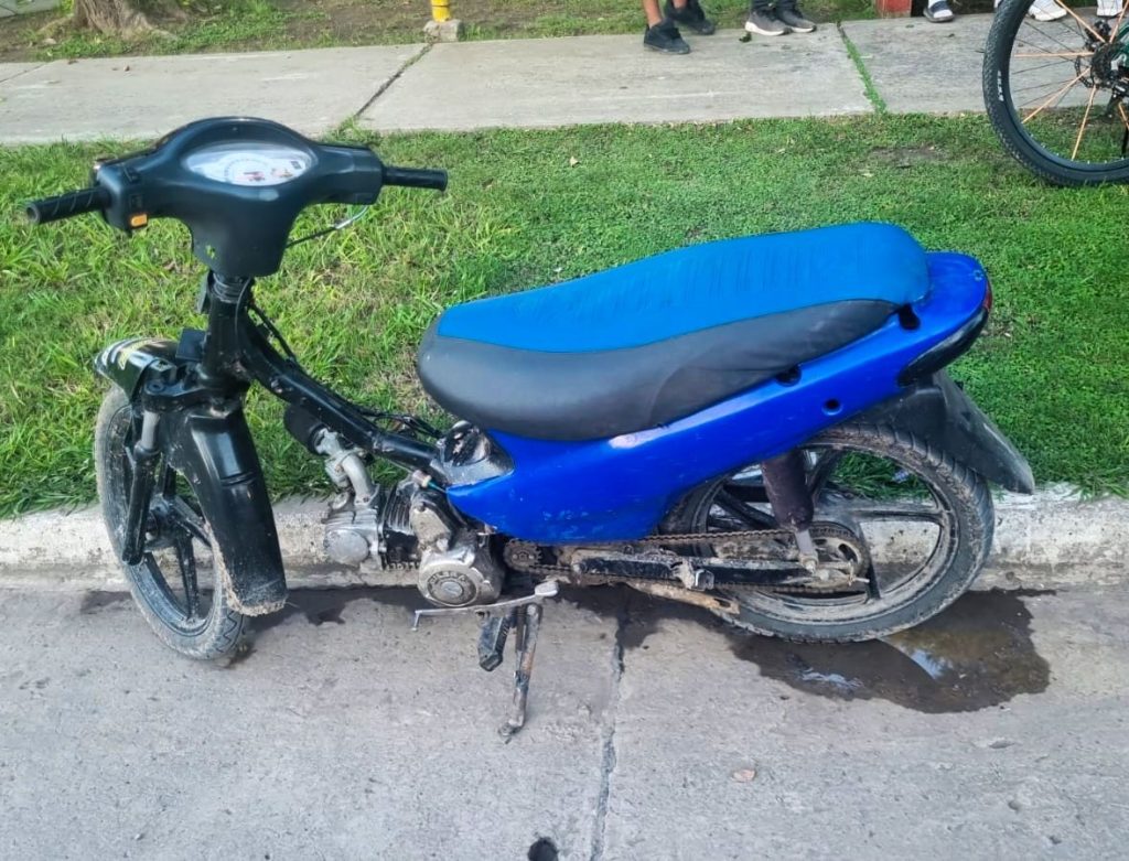 Se constató además que la motocicleta presentaba diversas irregularidades, tales como falta de dominio visible, ausencia de espejos y carencia de plásticos, no pudiéndose verificar numeraciones registrales.