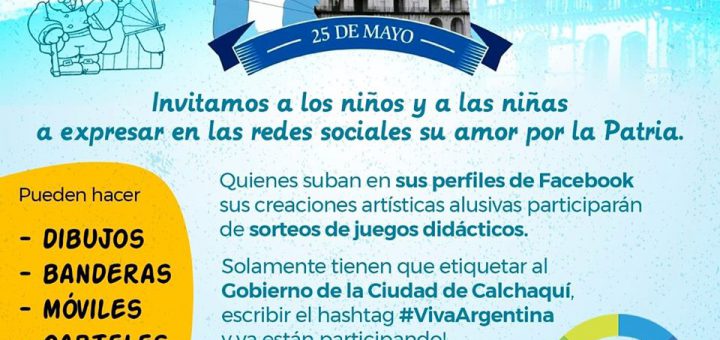 Bajo la consigna “Celebremos el 25 de Mayo”, el municipio de Calchaquí invita desde el 23 al 25 de mayo a nenes y nenas a expresar en las redes sociales su amor...