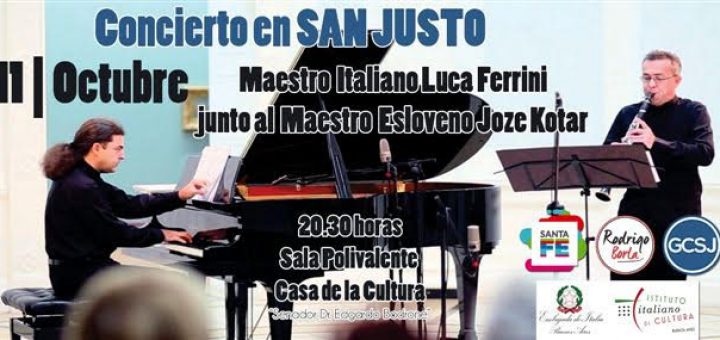El maestro italiano Luca Ferrini y su colega esloveno Josc Kotar estarán en San Justo para ofrecer un Concierto de alto nivel. Este espectáculo que ofrece la Embajada de Italia – Buenos...